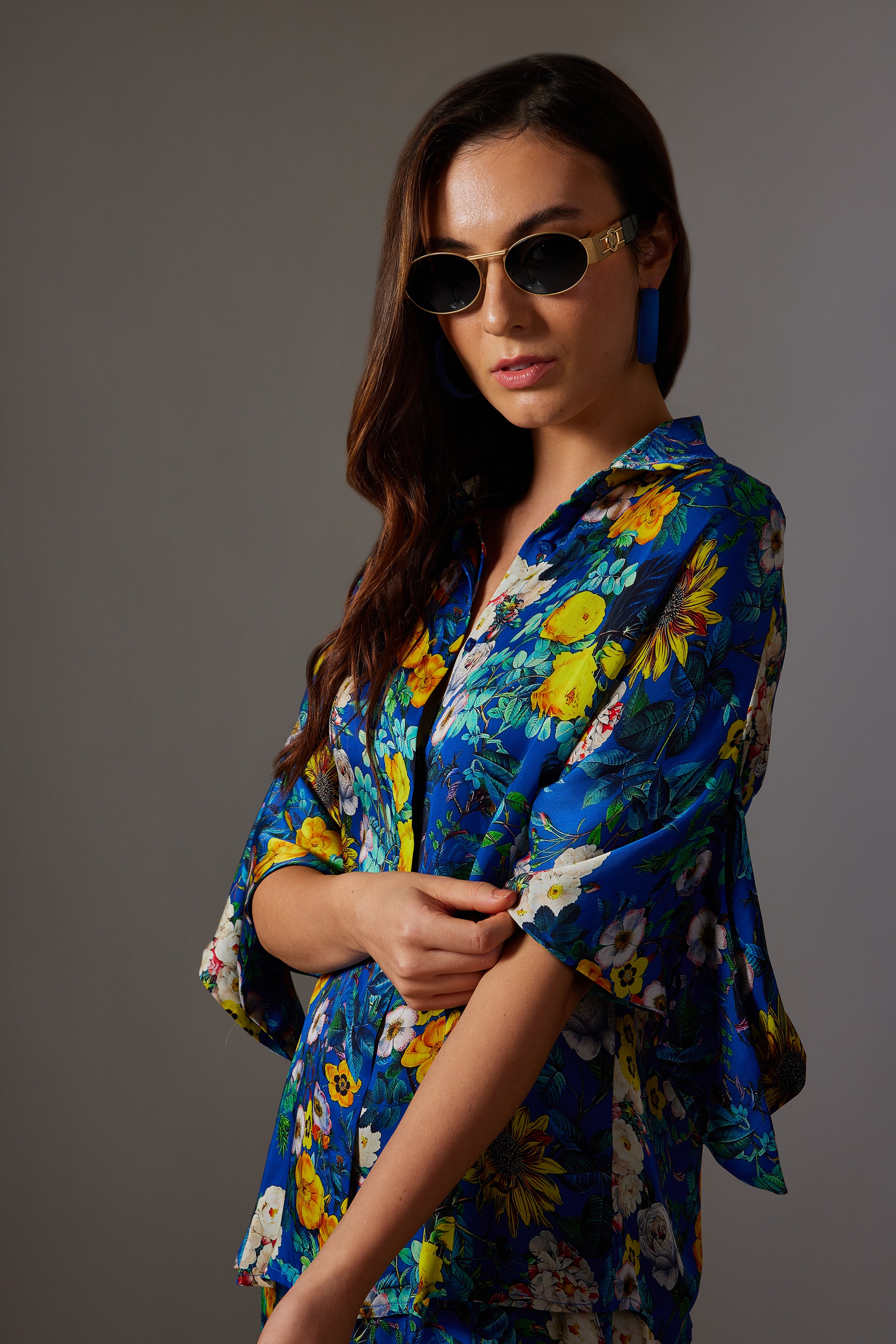CANCLINI FLORAL PRINT BLUE TIE-UP SHIRT